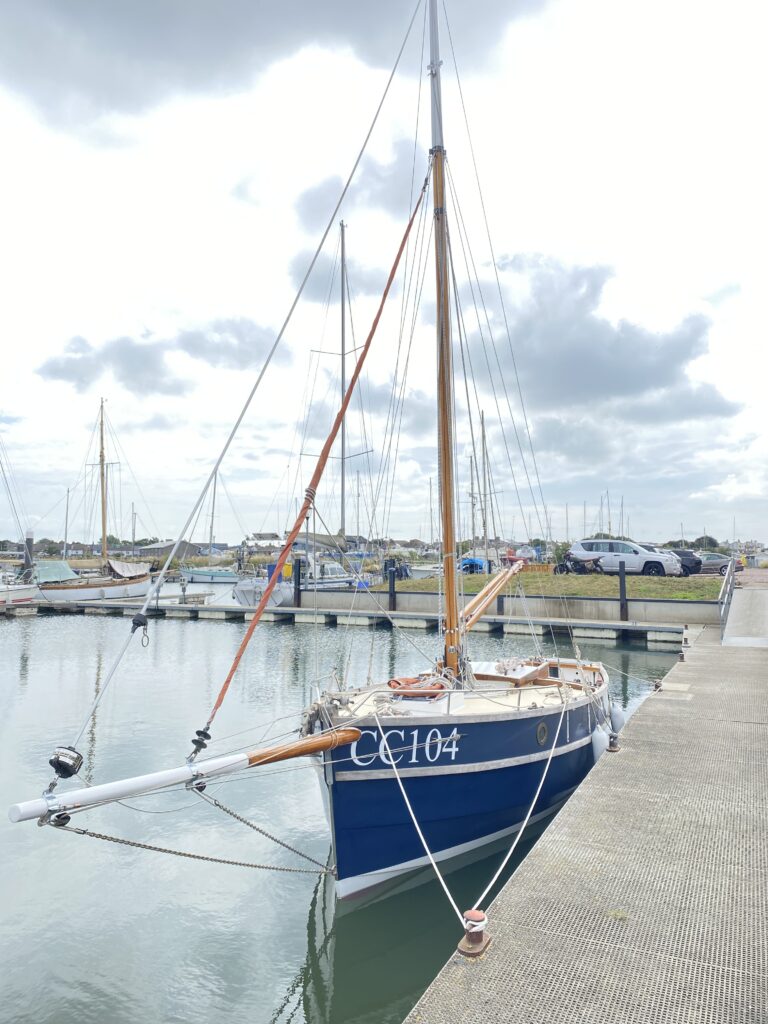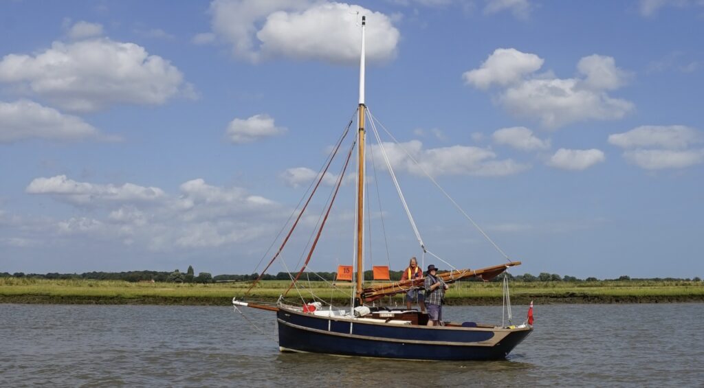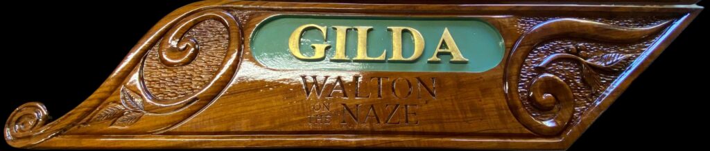 Her shakedown cruise was a trip to the southern broads via Lowestoft before joining the OGA cruise. In 2025 I carved two name boards for ‘Gilda’. Added to the electrics including a solar panel. Built an aft deck and rebuilt the rudder, rudder shaft bearings and housing. The rudder has been given an aerofoil shape with a 10% lead ahead of the shaft to create a balanced rudder. This single change has transformed Gilda’s handling. Plans for 2026 include painting the hull, additional ballast, a jackyard topsail, wider bunks and new cushions. The centreboard pivot bolt is also due for inspection. Since launching in 2024 ‘Gilda’ has visited the Broads, Ore and Alde, Snape, the Deben, Woodbridge, Stour, Orwell, Colne and Brightlingsea as well as regularly sailing the Walton Backwaters.