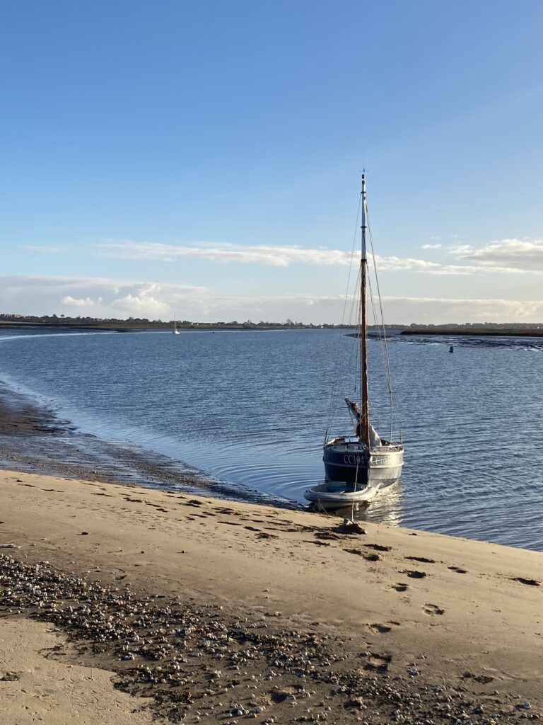For a few years now, Christmas has been difficult for me. Normal life stops, people disappear, places are closed. It can be lonely. When I was a nurse, I often worked at Christmas, looking after those who were in need of care and, for those patients in hospital who didn’t have any visitors, I liked to feel useful. A couple of years ago I fulfilled my dream of having Christmas Day with my Mum and dog on my boat ‘Rhapsody’ an Anderson 22. We cooked steak with peppercorn sauce and heated vegetables on the minimalist gas hob. It was fantastic, the river was still, the sky clear and sunny. We ate our meal looking out over the River Orwell at Pin Mill. I was in my element.